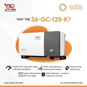 As Pakistan’s energy landscape transforms, the demand for reliable, efficient, and scalable solar solutions is growing stronger. In the face of increasing strain on the national grid and a heightened focus on sustainability, AE Power—a pioneer in renewable energy since 2012—has once again stepped forward with a robust answer: the Solis S6-GC-125-K commercial inverter.